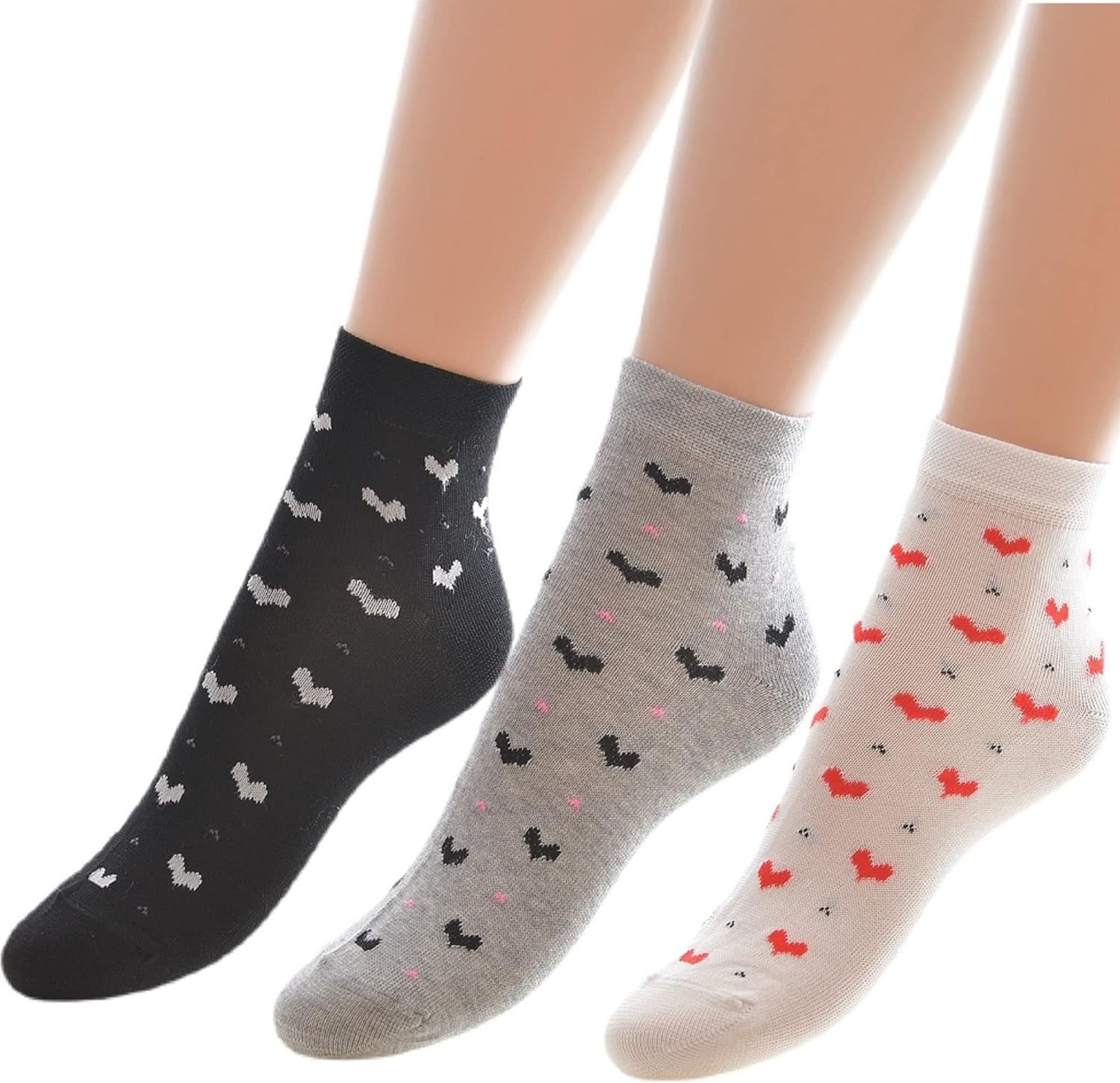 6/12 PAIA CALZINI DONNA A POIS IN PURO COTONE FILO DI SCOZIA 35-40 FANTASIA assortimento cuori